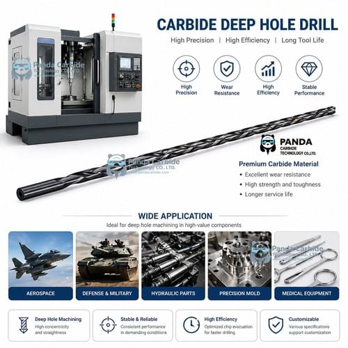 At Panda Carbide, we recommend a Pilot Drilling Strategy followed by a continuous feed with high-pressure internal coolant (minimum 40-70 bar) to ensure seamless chip evacuation and thermal stability.